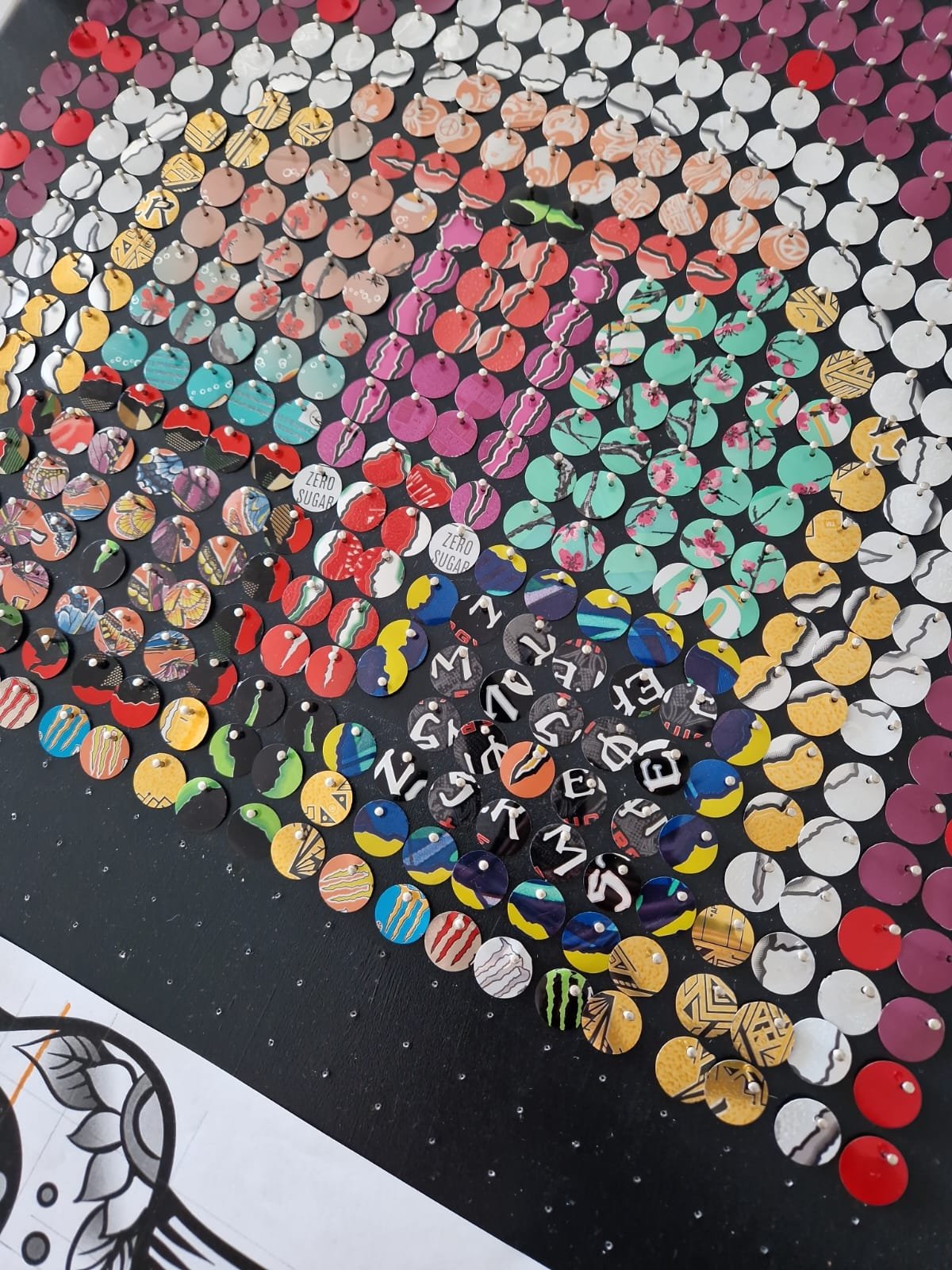 Chaque canette récupérée devient un fragment d’histoire, un éclat de vie urbaine transformé en matière créative.
